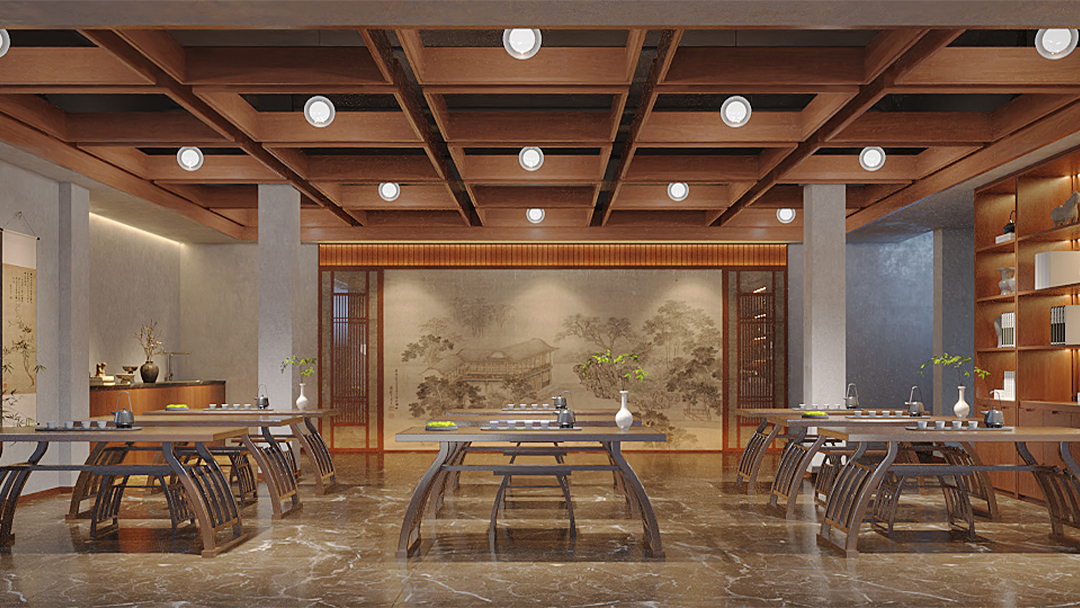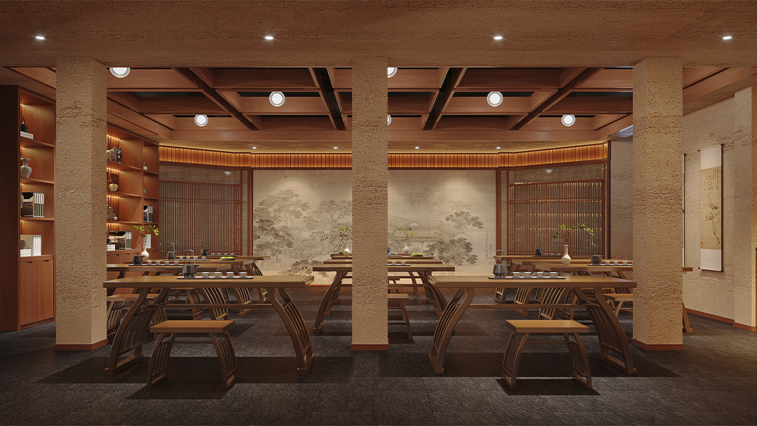 針對不同場景需求,劃分開放品茗區、私密包廂及商務洽談區。例如大廳設置可移動格柵實現空間靈活分隔,包間融入榻榻米茶席與獨立衛浴,兼顧社交儀式感與實用性。 - 細節處的文化敘事