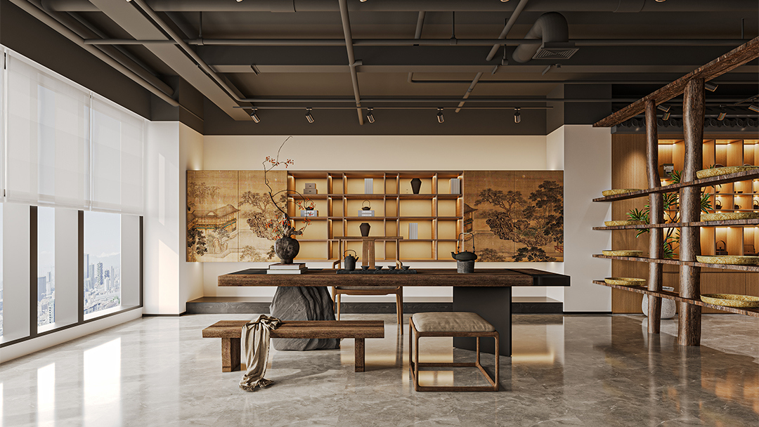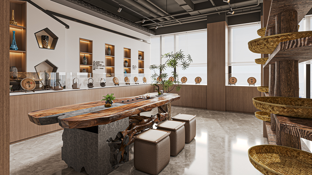 設置開放式點茶區、私密包廂及景觀庭院,例如大廳以抬高地臺劃分主客位序,包間融入榻榻米茶席與獨立枯山水造景,動線設計參考《清明上河圖》的街巷邏輯,引導顧客沉浸式體驗宋人雅集。 - 文化符號的創新表達