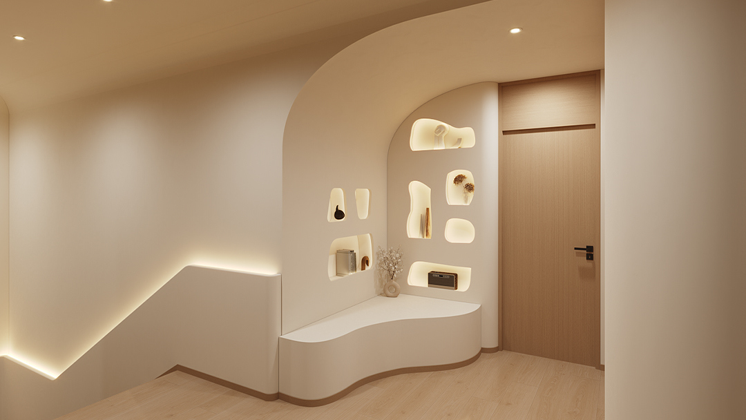 保留原始水泥墻面與金屬網格吊頂,搭配原木色生態板及綠植墻,粗獷中透出溫馨。 - 智能科技賦能體驗