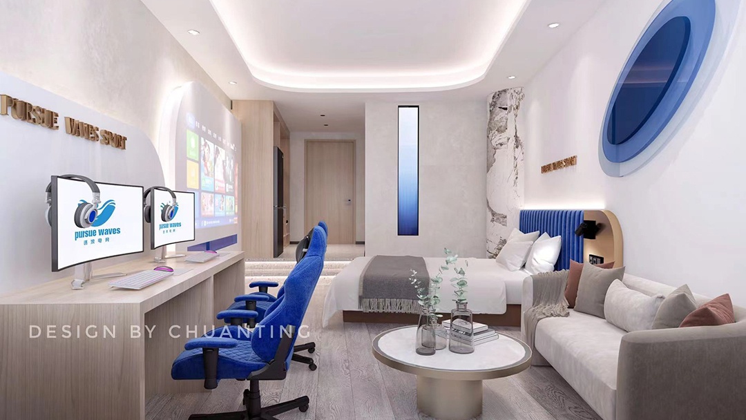在設(shè)計(jì)上,注重空間規(guī)劃的合理性。對(duì)于電競(jìng)酒店客房,會(huì)根據(jù)不同房型布局,確保滿足住宿與電競(jìng)娛樂的雙重功能,同時(shí)兼顧舒適性與科技感。如設(shè)置合理的電競(jìng)設(shè)備擺放位置、舒適的休息區(qū)域等。