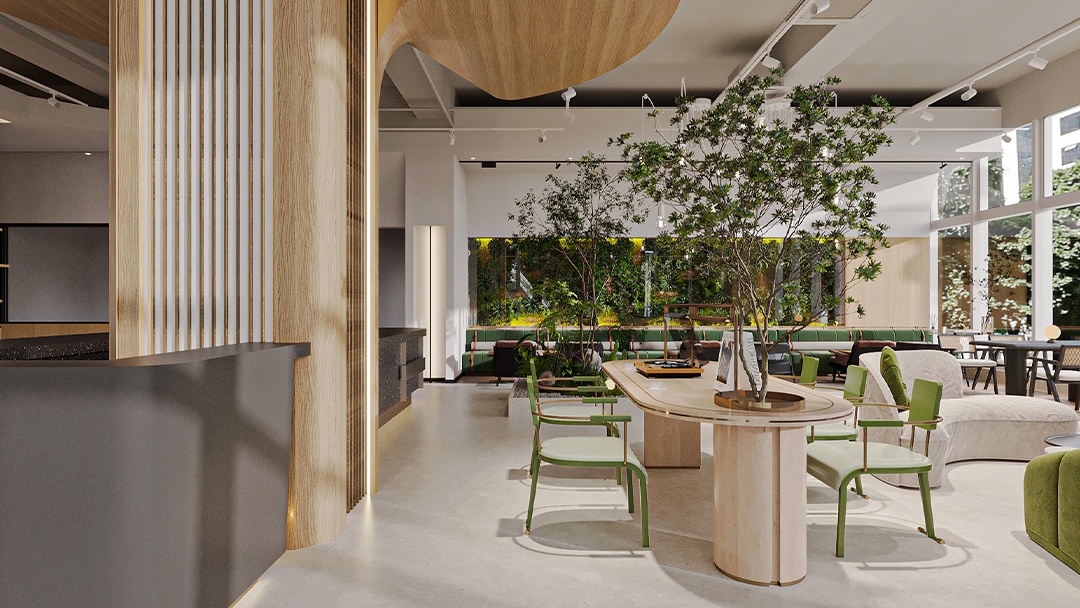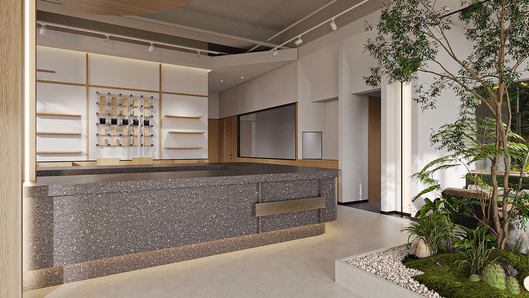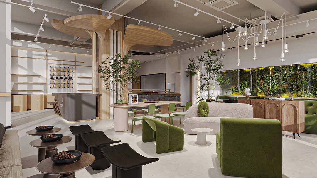 杭州高端烘焙店裝修設計,本案以“可食用藝術館”為核心理念,空間以博物館級燈光與大理石材質營造沉浸式展陳氛圍。定制弧形玻璃展柜懸浮于金屬網格系統之上,精準呈現面包的工藝細節。中央島臺融合可升降烘焙演示設備,打造劇場化互動體驗。墻面采用微水泥與黃銅鑲邊,結合香氛與背景音效系統,從視覺、嗅覺、聽覺多維度構建高端感知。后廚透過環形霧化玻璃若隱若現,在保持神秘感的同時傳遞專業級標準。