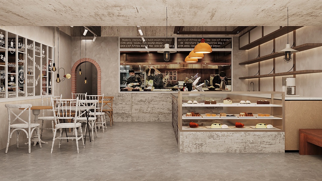 杭州工業風烘焙店裝修設計,本案以“裸感美學”為基調,保留原始混凝土結構與銹蝕鋼架,搭配暖調木元素平衡冷峻感。中央設置可透視的定制銅管發酵箱陣列,成為動態藝術裝置。照明采用軌道射燈與工業吊燈組合,精準聚焦于面包陳列臺。回收舊木板拼接的客座區,與銹鋼板吧臺形成質感碰撞,點綴攀援綠植軟化空間。整體以“未完成的精致”為理念,在粗獷中凸顯手作溫度與工藝可視性。