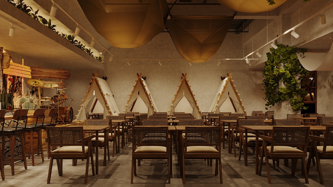 杭州露營風戶外酒吧裝修設計,本案以“都市曠野聚落”為概念,將山系美學植入城市夜生活。空間鋪陳礫石地與仿真草坪,搭配復古煤油燈串與天幕系統(tǒng)。中心區(qū)域架設篝火裝置與折疊椅環(huán)座,吧臺由改裝露營車箱體構成。墻面運用防銹鋼板與回收木料,嵌入戶外裝備展示架與多功能電源接口。頂部懸掛星空投影網(wǎng),結合隱藏式取暖設備與驅(qū)蚊系統(tǒng),營造全天候可用的沉浸式戶外社交場景。