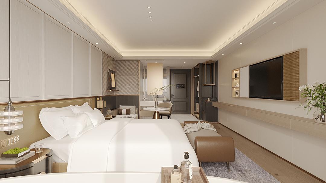 杭州設(shè)計師酒店設(shè)計裝修,本案以“城市留白”為設(shè)計哲學,將西湖的靜謐感融入空間。通過無主燈磁吸軌道系統(tǒng)與大面積微水泥墻面的運用,構(gòu)建出柔和的光影層次。定制懸浮式家具與隱藏式收納系統(tǒng),實現(xiàn)功能與美學的統(tǒng)一。整體以低飽和度色彩為基調(diào),局部點綴金屬與石材細節(jié),營造出兼具東方禪意與當代極簡的沉浸式旅居體驗。