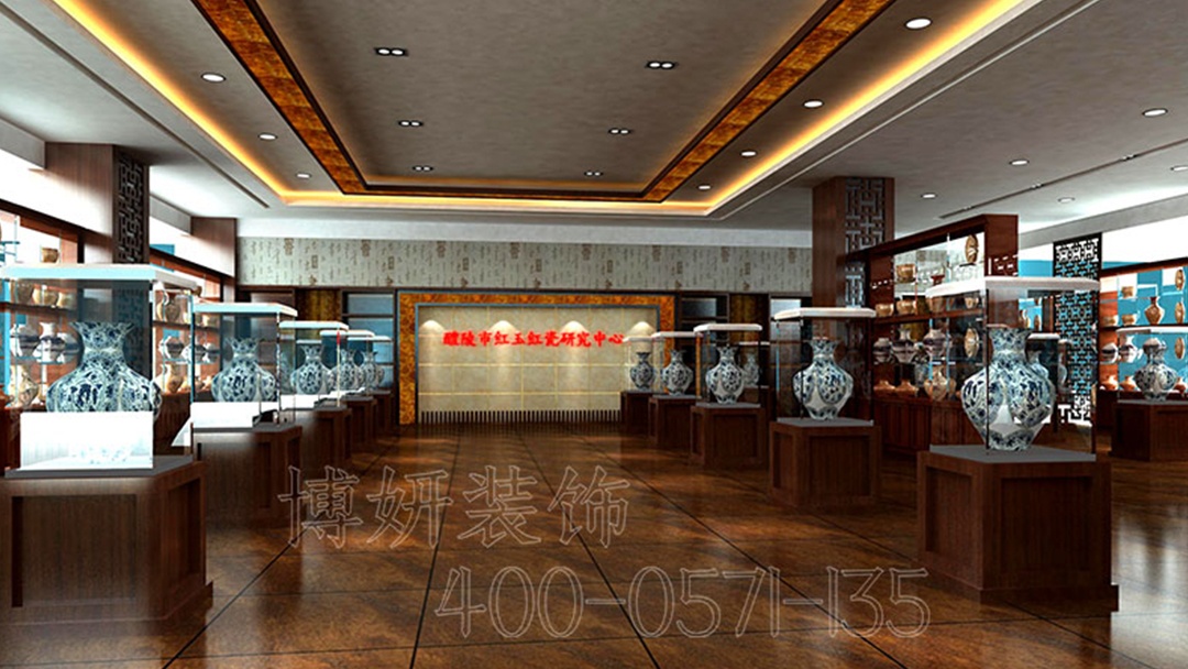 杭州青瓷文化展廳裝修設(shè)計,以獨特設(shè)計喚醒千年瓷韻。展廳入口,復(fù)古紅色墻面奪目卻不失典雅,似在訴說著青瓷往昔的輝煌,瞬間抓住參觀者的目光。步入其中,木質(zhì)格柵巧妙劃分空間,其溫潤質(zhì)感與復(fù)古紅墻相得益彰,營造出古樸又溫馨的氛圍。陽光透過格柵灑下,光影交錯間,增添了幾分靈動與詩意。青瓷展柜,采用定制設(shè)計,以沉穩(wěn)色調(diào)襯托青瓷的溫潤如玉。展柜內(nèi),燈光精準(zhǔn)聚焦,讓每一件青瓷的細(xì)膩紋理與獨特釉色清晰展現(xiàn)。從經(jīng)典器型到創(chuàng)新佳作,在復(fù)古與現(xiàn)代融合的空間里,參觀者能沉浸式感受青瓷文化的深厚魅力,開啟一場穿越時空的文化對話。