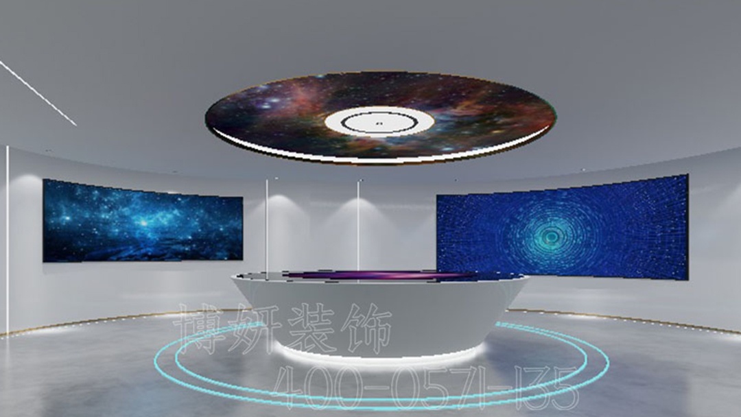 杭州數字多媒體展廳裝修設計,以獨特設計展現非凡魅力。整體空間,以灰白色為主色調,奠定簡潔、大氣的基調,營造出專業且高端的氛圍,讓參觀者甫一進入,便感受到沉穩與莊重。