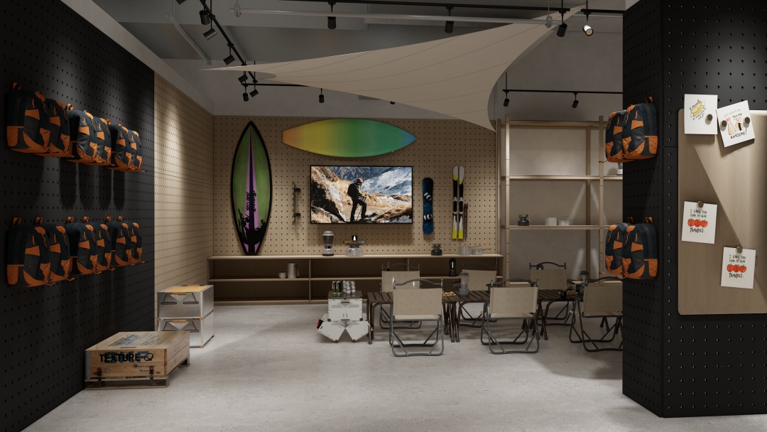 - 功能分區優化:設置動態展示區與靜態試衣間,通過高低錯落平臺劃分區域,既保證顧客探索動線的流暢性,又滿足裝備試用的專業需求;