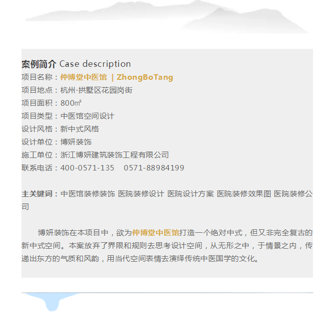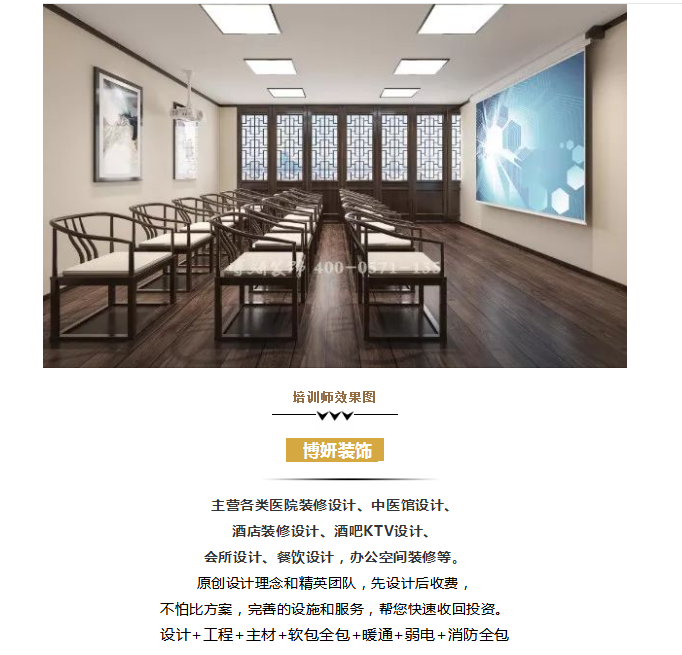 博妍裝飾,專業的中醫館裝修設計公司,提供一站式的服務,設計+工程+主材+軟裝全包,免費提供專業的中醫館裝修設計效果圖,中醫館裝修設計方案,免費咨詢熱線:400-0571-135! 更多時尚高端中醫館裝修設計請關注博妍裝飾公司官網:http://m.kshuanya.cn