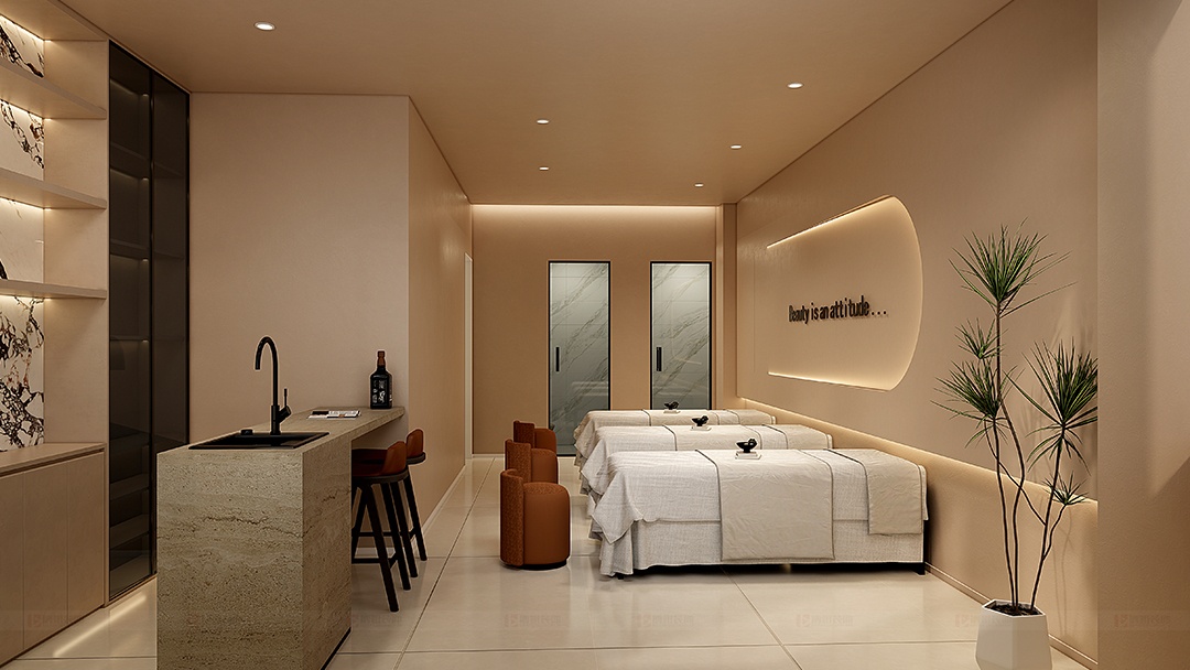 高端美容SPA的裝修設計,以細膩筆觸勾勒空間情緒。我們以暖色調(diào)為基底,精選米白、淺咖、琥珀金等低飽和度色彩,通過墻面、織物與燈光的層次疊加,營造出如陽光傾灑般的溫柔包裹感,讓每一位踏入者瞬間卸下疲憊,沉浸于溫暖而私密的療愈氛圍。空間布局上,弧形隔斷與流線型家具弱化棱角,搭配天然胡桃木飾面,傳遞低調(diào)的奢華質(zhì)感。智能調(diào)光系統(tǒng)與隱藏式燈帶交織出柔和光影,輔以香氛與自然音效,打造多維感官體驗。從接待區(qū)到護理室,每一處細節(jié)均以“暖”為引,讓高端不止于表面,更化作觸手可及的身心呵護。